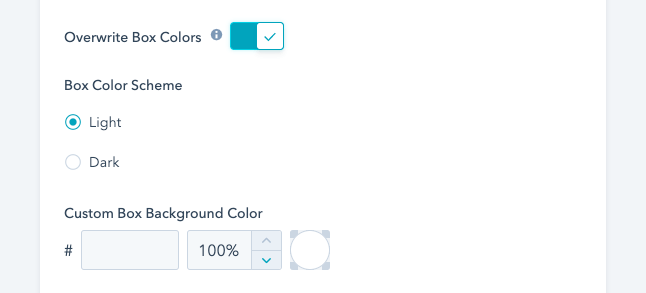 Overwrite Box Colors: This enables you to change the background color and font color of the box style: “Content Below” with box style variant “with Background”